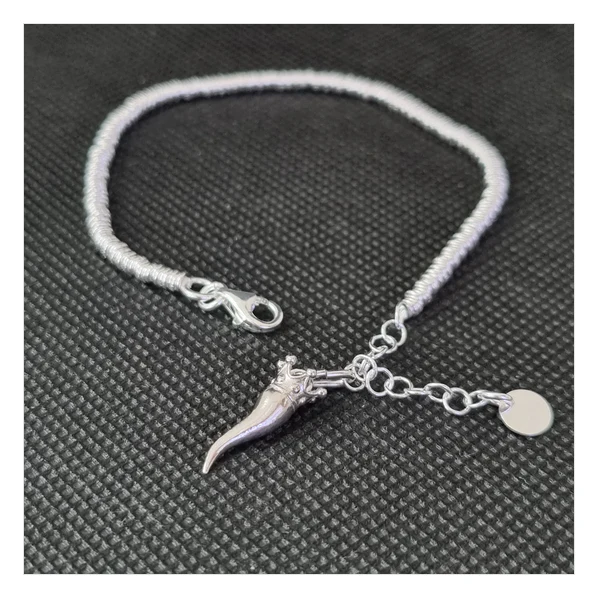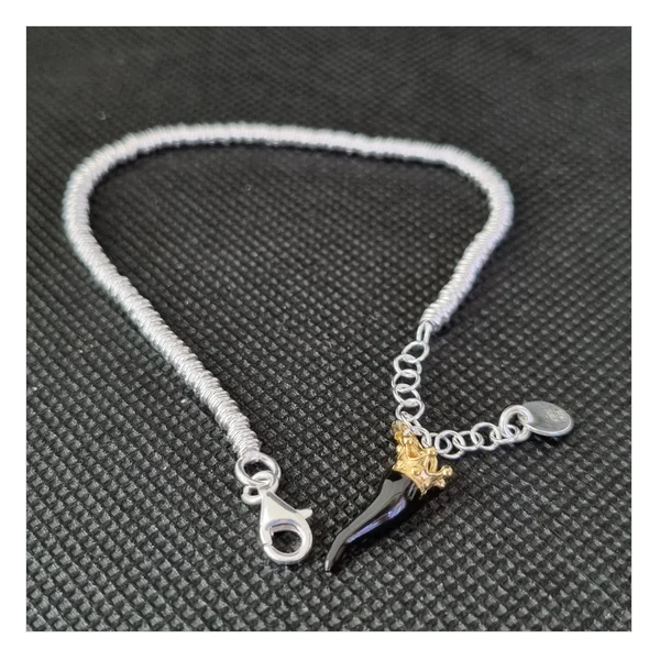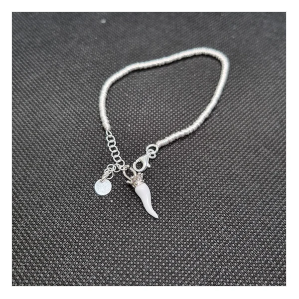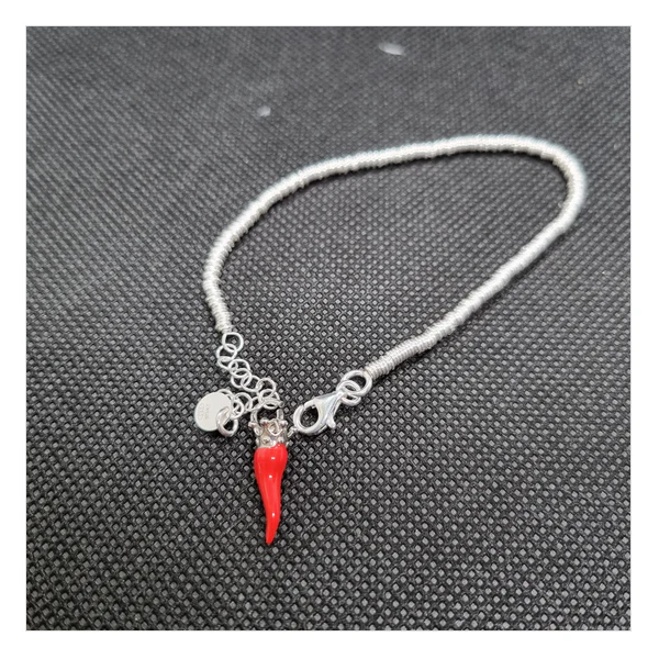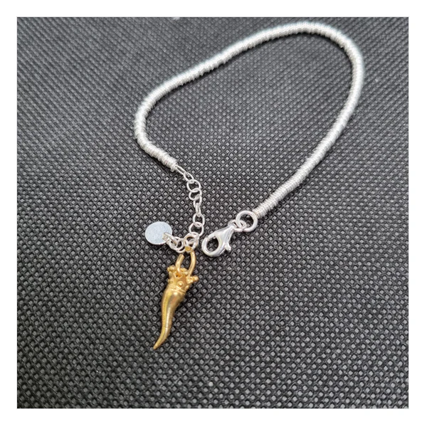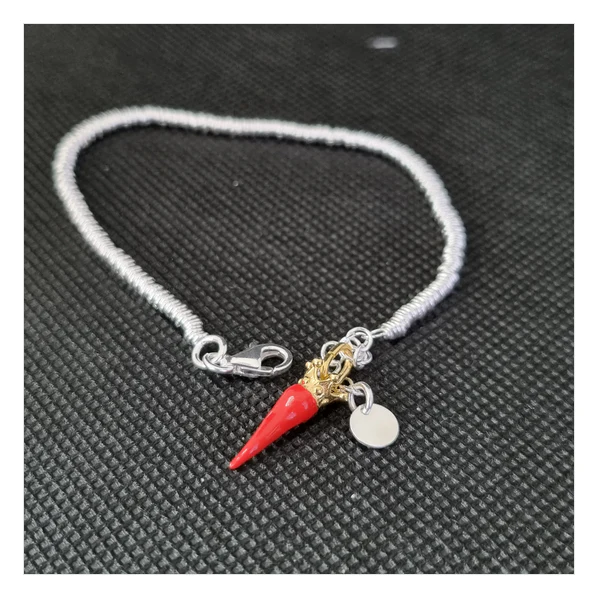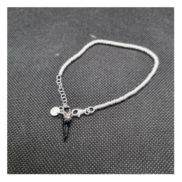 Bracciale in argento 925 anellini lucidi con Ciondolo Cornetto in Argento e Smalto con Corona in Argento.