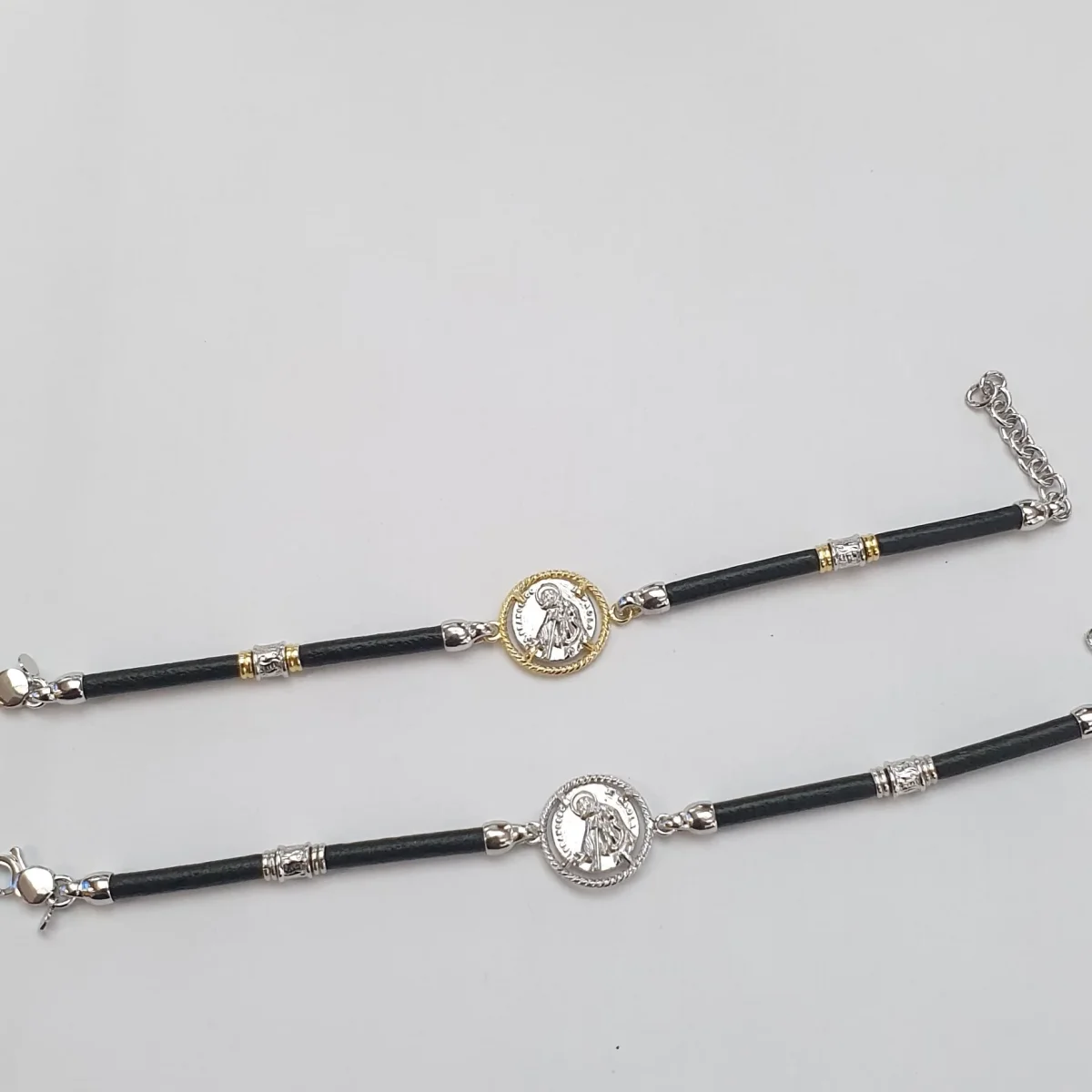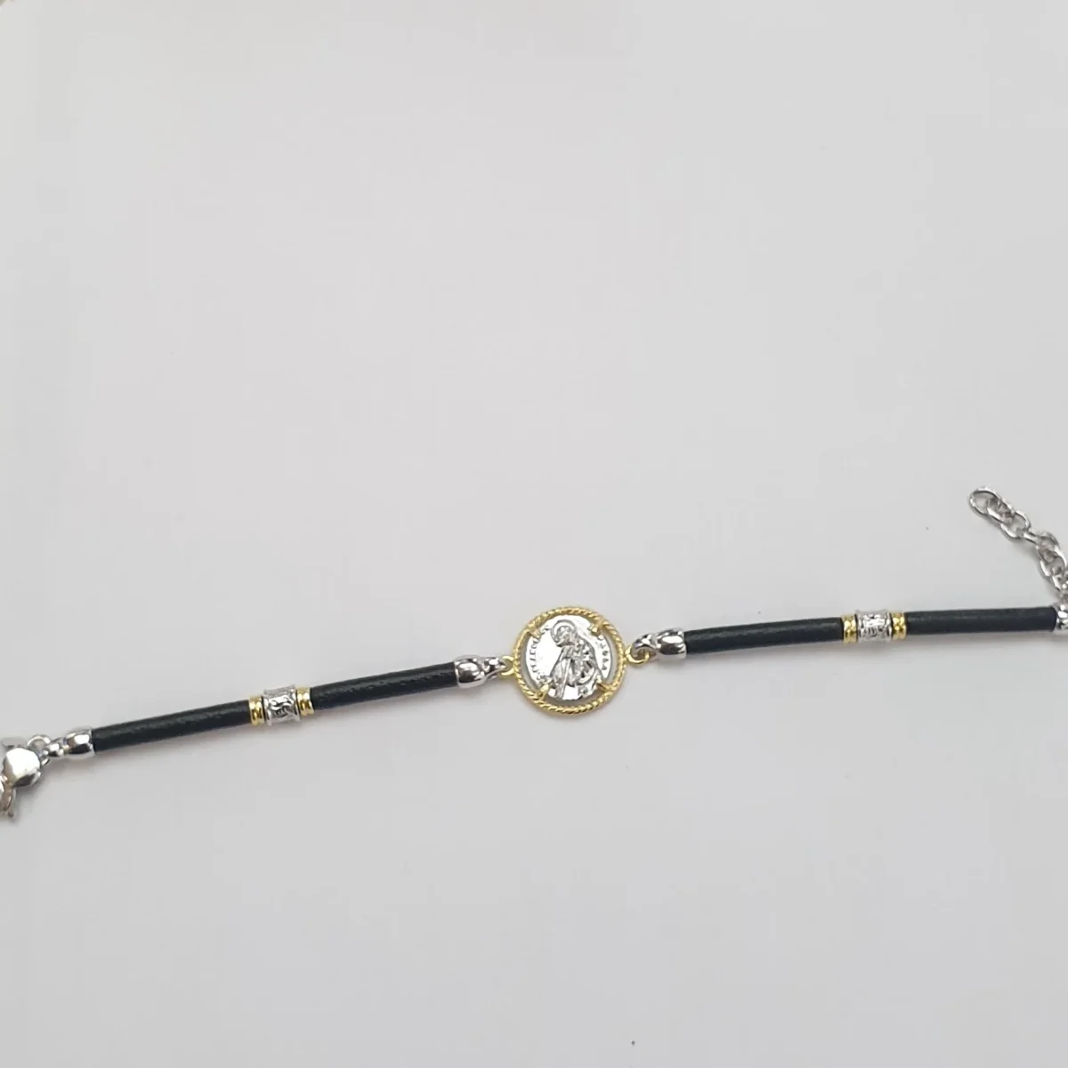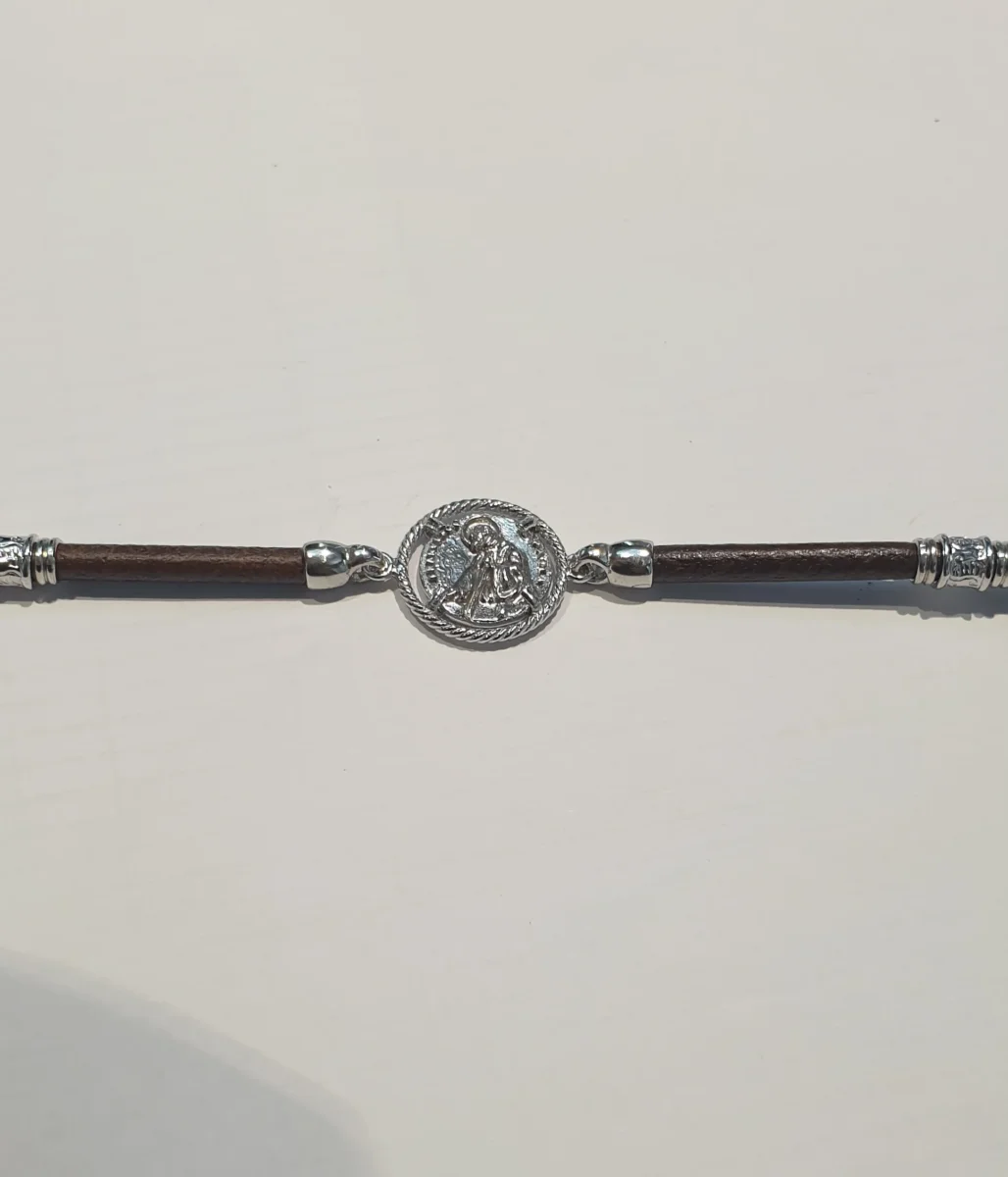Bracciale Cordino Cuoio Tondo con San Francesco di Paola centrale.