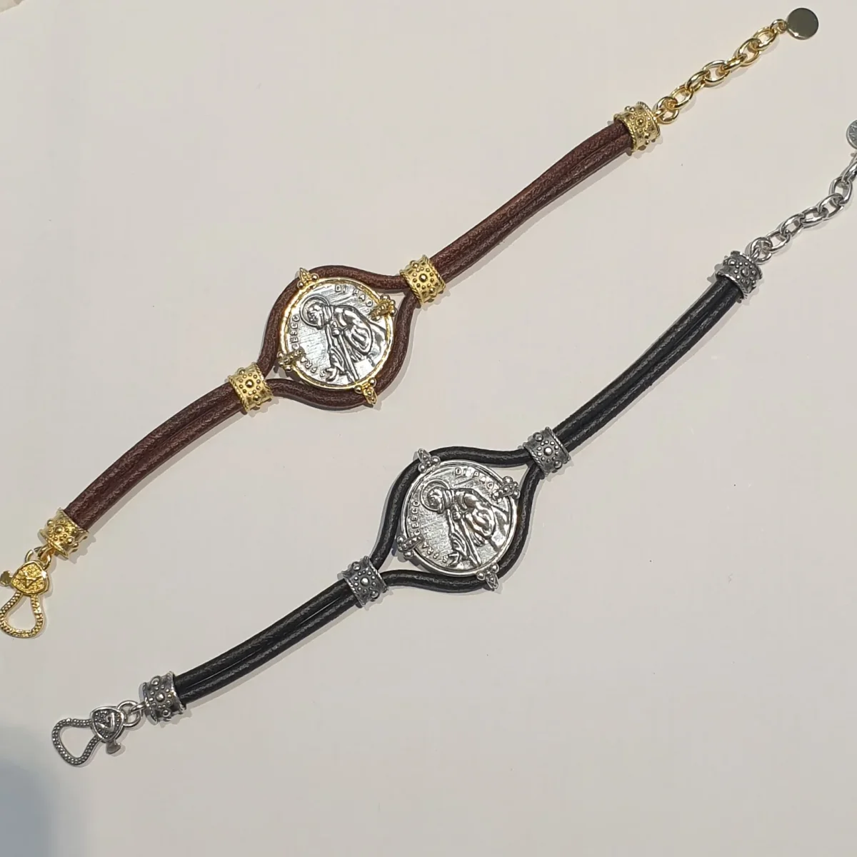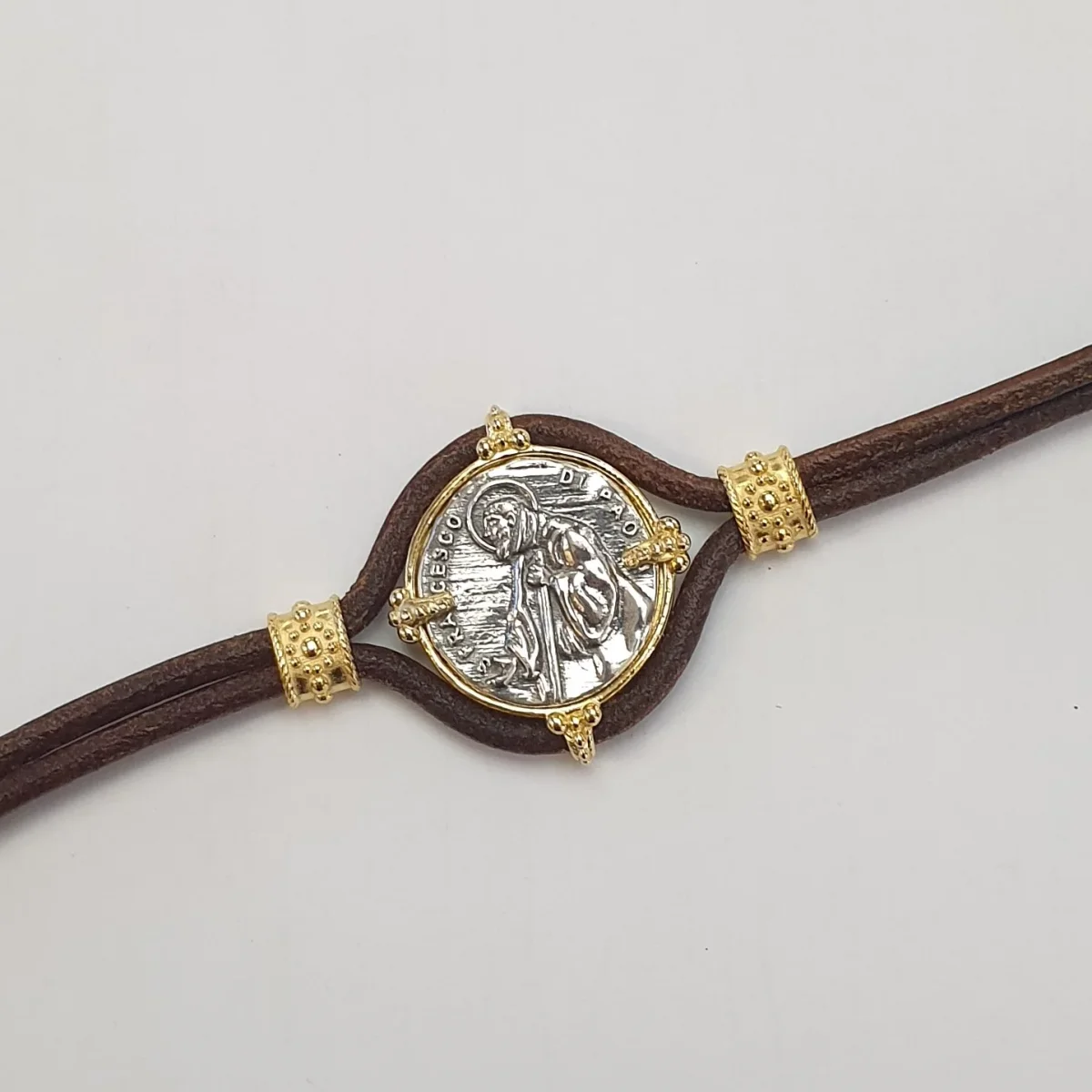 Bracciale Cuoio con San Francesco di Paola centrale.
