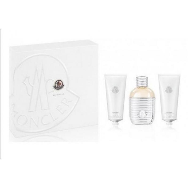Il cofanetto Moncler pour femme contiene una eau de parfum da 100 ml + gel doccia 100 ml + crema per il corpo 100 ml.