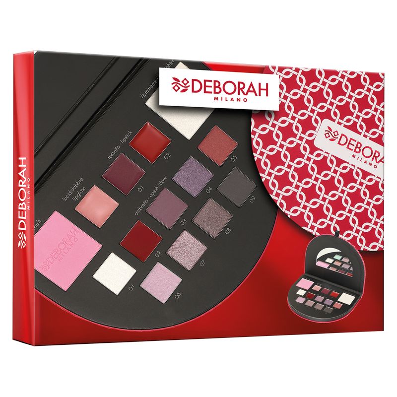 Il Make Up Beauty Gift n.1 contiene: 9 ombretti, 3 gloss/rossetti, 1 fard, 1 illuminante e 1 specchio.