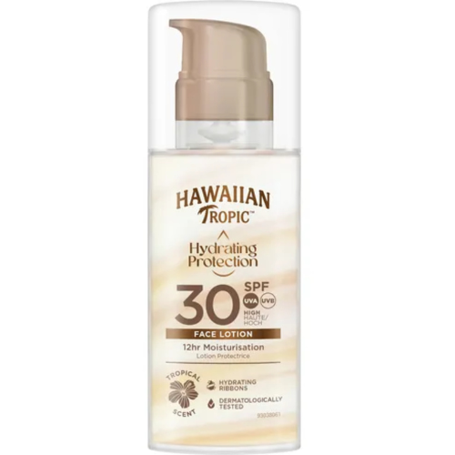 La Hydrating Protection Face Lotion SPF 30 di Hawaiian Tropic protegge la pelle del viso dai raggi UVA e UVB con SPF 30 senza ostruire i pori. Allo stesso tempo, la lozione idrata intensamente la pelle. Può essere facilmente utilizzata sotto il trucco.