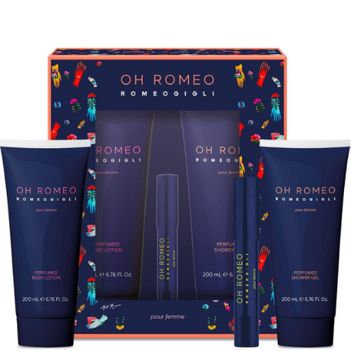 Set Romeo Gigli “Oh Romeo” composto da body lotion 200 ml + perfume pencil 3,2 ml + shower gel 200 ml.