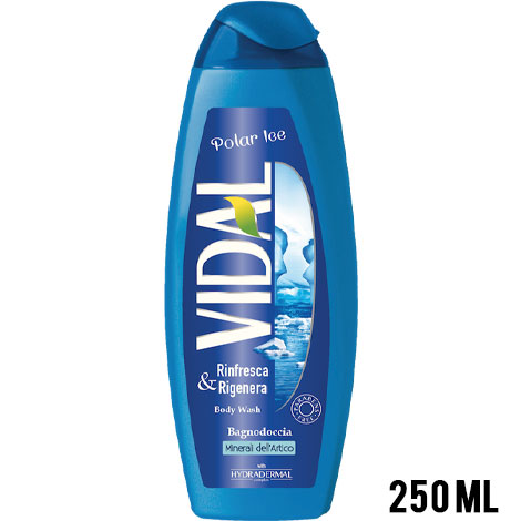 VIDAL DOCCIA POLAR ICE 250 ML è UN DOCCIA SCHIUMA DA 250 ML DISPONIBILE NELLA FRAGRANZA AI MINERALI DELL’ARTICO.